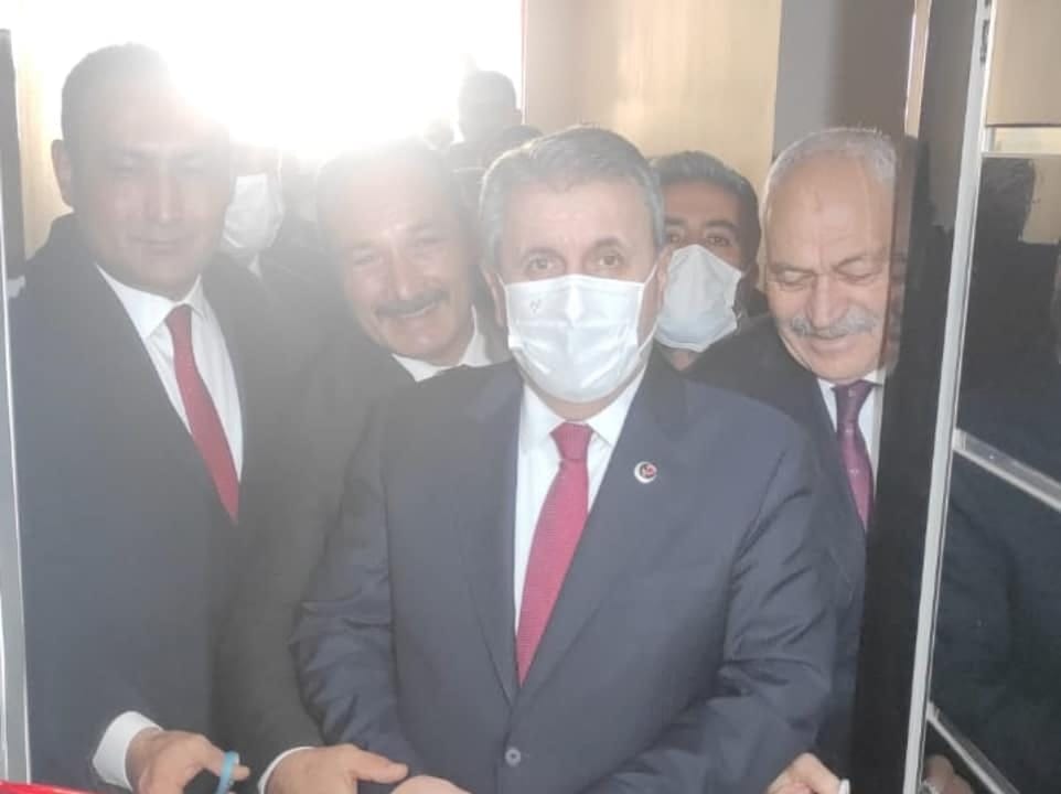 Açılışını Cumhur ittifakı ortağı Büyük Birlik Başkanı MUSTAFA Destecinin yeni bina açılışının kurdele kesiminde
