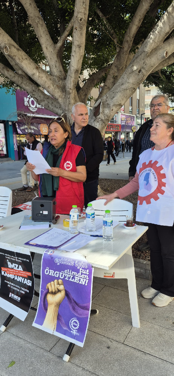 Tarsuslu vatandaşlara seslenen heyet, “Emekli ikramiyesi bir lütuf değil, dökülen alın terinin karşılığıdır. Bıçak kemiğe dayandı” diyerek tüm emeklileri imza kampanyasına destek vermeye davet etti. Sadece bugünün emeklisi için değil, geleceğin emeklileri olacak bugünün çalışanları için de bu mücadelenin kritik olduğu vurgulandı.