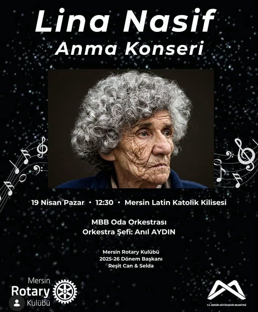 Mersin Rotary Kulübü tarafından yapılan davette, tüm vatandaşlar bu özel etkinliğe katılmaya çağrıldı. Anma ve konser programı, hem Lina Nasif’in hatırasını yaşatmayı hem de sanatla buluşmayı amaçlıyor.
